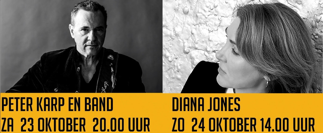 In het weekend van 23 en 24 oktober komen er weer twee artiesten van formaat naar De Amer. We mogen zowel bluesman Peter Karp (met band) als singer songwriter Diana Jones begroeten.
