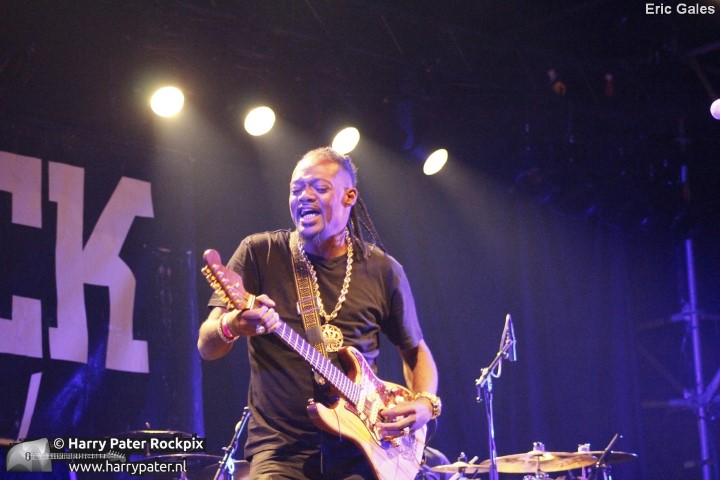 De headliner van het festival is deze Amerikaanse bluesrockgitarist en zanger Eric Gales, die met zijn uitstekende band een gevarieerd optreden geeft, waarin naast blues, rock, funk ook andere invloeden te ontdekken zijn. Tijdens zijn optredens is hij vaak geëmotioneerd als hij ter sprake brengt dat hij enige tijd geleden helemaal is afgekickt van alles waar hij aan verslaafd is geweest. Hierbij geholpen door zijn echtgenote LaDonna, die ook vanavond percussie speelt en achtergrondzang verzorgt. Het is inmiddels vlak voor het podium verschrikkelijk druk geworden, waardoor de fotografen haast in de verdrukking komen, doordat de vaak dronken bezoekers steeds meer ruimte innemen. Verwend als we sinds voor corona zijn omdat er binnen niet meer gerookt mag worden, is dit vandaag helaas niet het geval. Ondergetekende werd bijna onpasselijk van de wel heel zware wietlucht. Mede daardoor ook niet het hele optreden kunnen volgen.