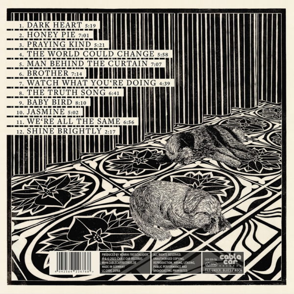 01. DARK HEART (5:19) 02. HONEY PIE (7:01) 03. PRAYING KIND (5:21) 04. THE WORLD COULD CHANGE (5:58) 05. THE MAN BEHIND THE CURTAIN (7:07) 06. BROTHER (7:14) 07. WATCH WHAT YOU’RE DOING (4:39) 08. THE TRUTH SONG (6:41) 09. BABY BIRD (8:10) 10. JASMINE (5:02) 11. WE’RE ALL THE SAME (6:56) 12. SHINE BRIGHTLY (2:17) Total Running Time: 71:45