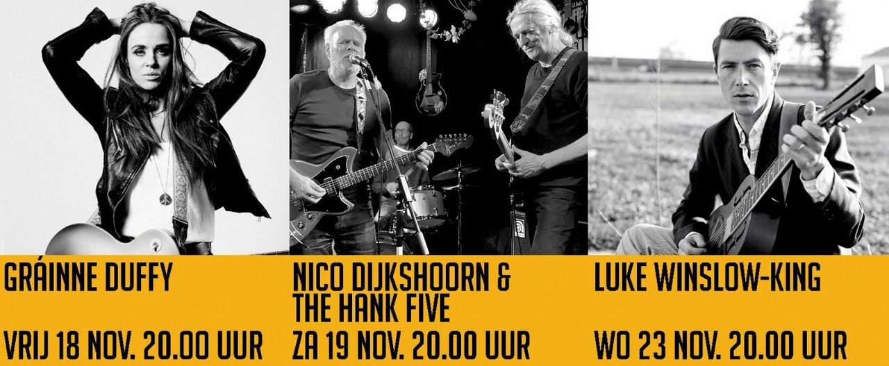 Op vrijdag Gráinne Duffy, een topartieste uit Ierland, op zaterdag Nico Dijkshoorn en zijn mannen uit eigen land en op woensdag de veelzijdige Amerikaan Luke Winslow-King vergezeld door Roberto Luti uit Italië. Wat hebben we weer een mooi internationaal programma halverwege november. Met zoveel variatie en kwaliteit is het misschien best moeilijk kiezen. Of je komt gewoon een paar keer...