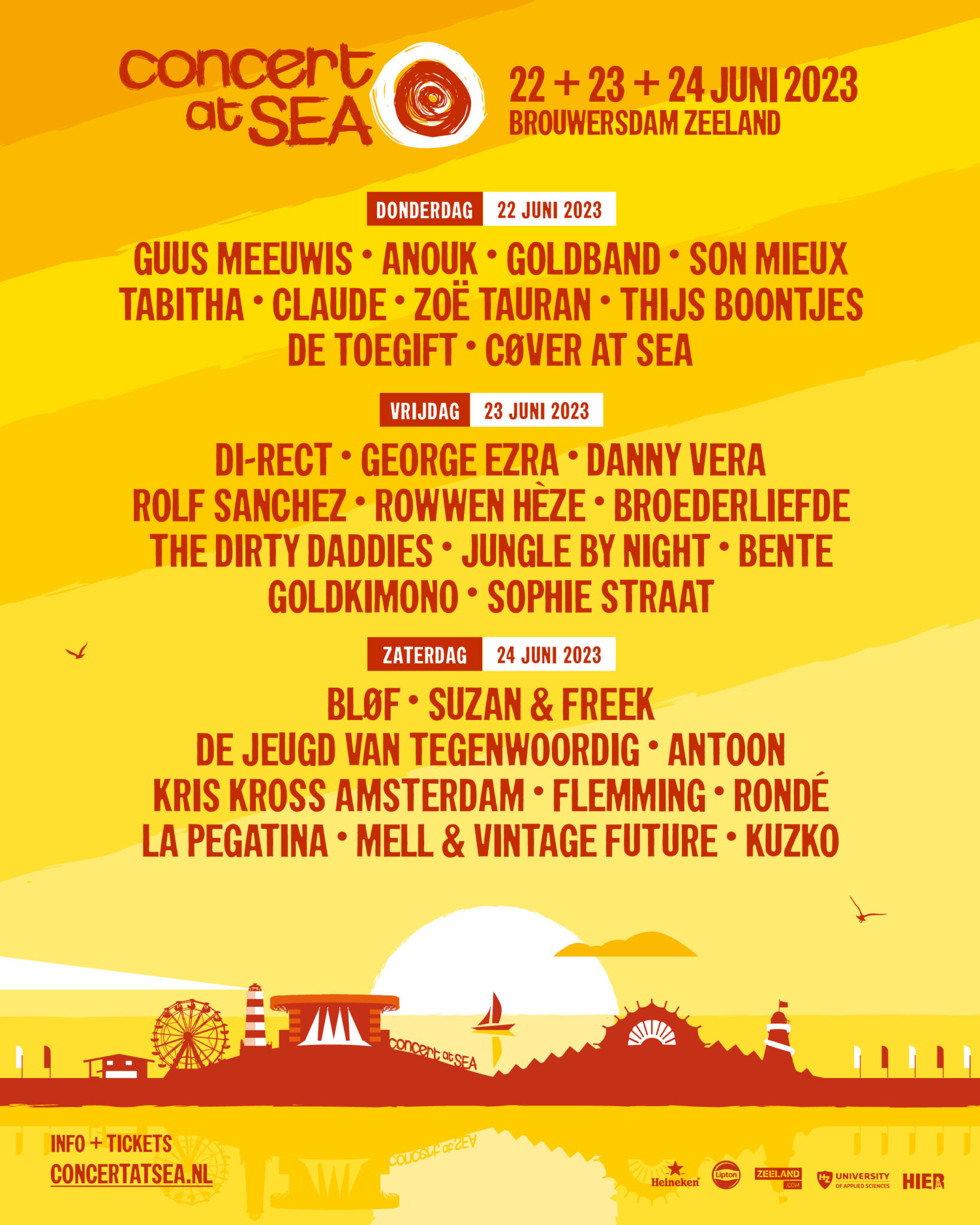 Van ambiance tot adrenaline. Van 'een kwestie van geduld' tot 'dit zijn mijn laatste woorden'. Het gaat alle kanten op Hier zijn 11 nieuwe namen voor Concert at SEA 2023.NIEUW OP DE LINE-UP:RONDÉ • Rowwen Hèze • Claude • Zoë Tauran • La Pegatina • Jungle By Night • Thijs Boontjes • Goldkimono • Sophie Straat • KUZKO • De ToegiftDe line-ups van het Zeeland Podium en Umoja Podium zijn nu compleet. Het comedy-programma en het feestprogramma (voor tot in de late uurtjes) worden later bekendgemaakt. Het tijdschema wordt in juni gepresenteerd. Goed nieuws: er komen weer dagkaarten vrij voor zowel de vrijdag als de zaterdag. Deze gaan a.s. dinsdag om 12 uur in de verkoop via concertatsea.nl/tickets