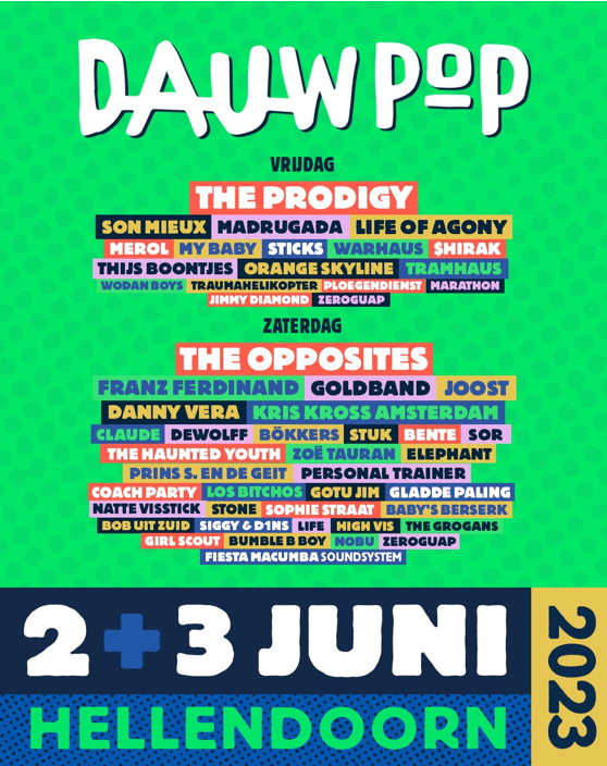 De kaartverkoop voor Dauwpop 2023 gaat hard. Op dit moment zijn er nog dagkaarten voor beide afzonderlijke dagen verkrijgbaar en zijn er kaarten die toegang geven tot het festivalterrein op zowel twee als drie juni.
