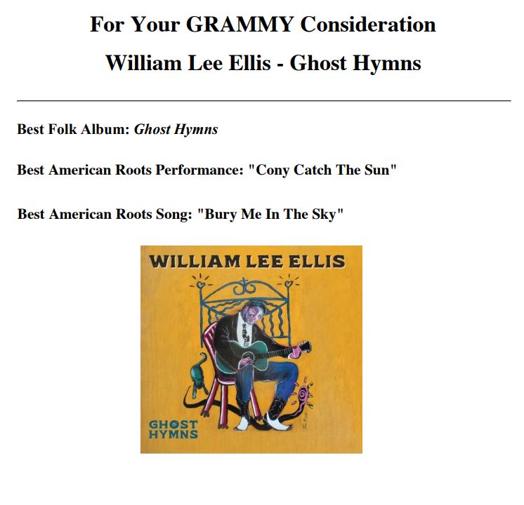 William Lee Ellis comes by his musical prowess naturally. His father, North Carolina native Tony Ellis, is a veteran of Bill Monroe’s early-‘60s Blue Grass Boys. Tony Ellis – the inaugural Ohio Heritage Fellowship recipient for performing arts in 2003 – is able to drive the five-string with the best of them, as he did on the acclaimed 1993 Masters of the Banjo tour and album produced by the National Council for Traditional Arts. Bill backed his father for decades on record and tours, and his father’s influence can be heard throughout Ghost Hymns. “More than any of my previous albums, I hear the weight of my dad’s musical imprint on my own, which is perhaps why I’ve chosen this album to finally play some banjo and arrange one of his most elegant fiddle tunes.” The journey fittingly ends where it began: “It’s a family trait, I guess. I may not share his bluegrass tenure, but I’d like to think I carry forward my father’s gifts of tone and melodic craft and the ability to personalize tradition.”