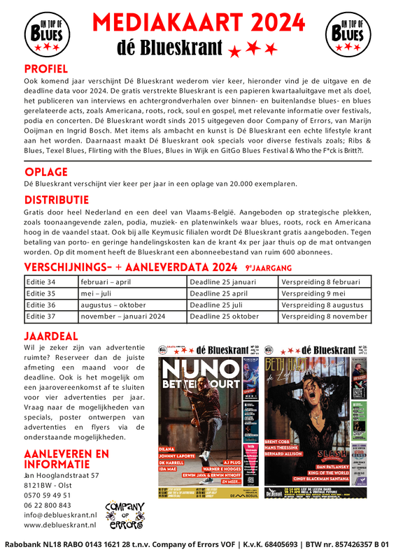 Editie 34 van Dé Blueskrant komt uit in de tweede week van Februari en loopt tot eind April.