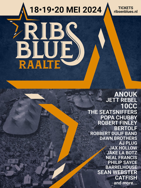 De 26e editie van Ribs & Blues gaat in het Pinksterweekend van 18 tm 20 mei plaatsvinden op het festivalterrein De Domineeskamp in centrum Raalte.