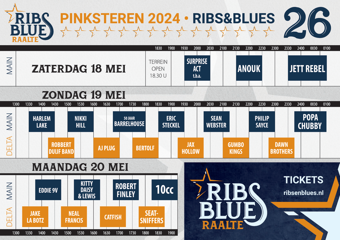 Met 5 nieuwe namen voor de Pinksterdagen en een extra surprise act op de zaterdagavond is het programma voor de 26e editie van Ribs & Blues in Raalte compleet!