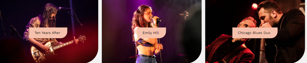 Bluesfans opgelet! Heerlijke ritmes, weergaloze gitaarsolo’s en imposante zang. Muziek en teksten, doordrenkt van alles wat het leven bracht en brengt. Powerblues, Mississippi blues tunes, soul ballads. Laurence Jones, Ten Years After, Julian Sas, Danny Giles, Emilly Hill, Chicago Blues Duo, Ralph de Jongh, Richville en Feather & the White reizen af naar Hoogeveen.