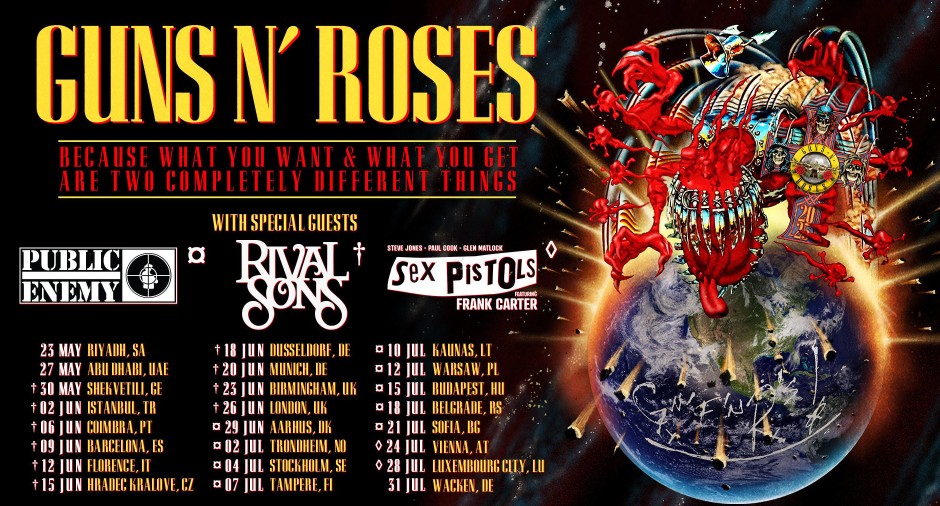 The Guns N’ Roses European 2025 stadium tour will include the following shows with Rival Sons: