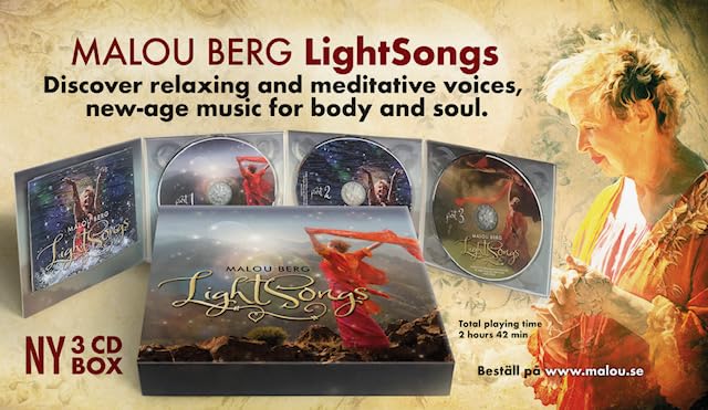 Singer/composer Malou Berg’s 3 CD box set, LightSongs, contains 15 songs spanning nearly three hours of music, and was the final release in Malou Berg’s series of nine CDs called The Pleiadian Suite.