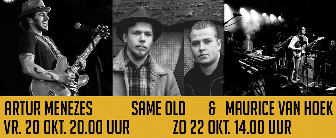 We zijn erg blij en trots om dit oktoberweekend een echte primeur te kunnen presenteren met Artur Menezes en zijn band. Met zeer diverse invloeden laat Artur een frisse wind door de bluesrock scene waaien. De zondagmiddag wordt heel speciaal met twee concerten voor de prijs van één! De middag wordt geopend door de mannen van Same Old. Daarna speelt Maurice van Hoek met zijn band. Genoeg te kiezen dus! Op zaterdagmiddag spelen de Bluegrass Boogiemen (al volledig uitverkocht).