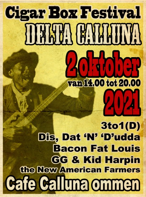 Het heeft even geduurd, maar na de persconferentie van 14 september j.l. zien we genoeg mogelijkheden om eindelijk weer eens een prachtig cigar box gitaar festival neer te zetten. Delta Calluna editie 2021 vindt daarom plaats op zaterdagmiddag 2 oktober a.s. vanaf 14:00u.