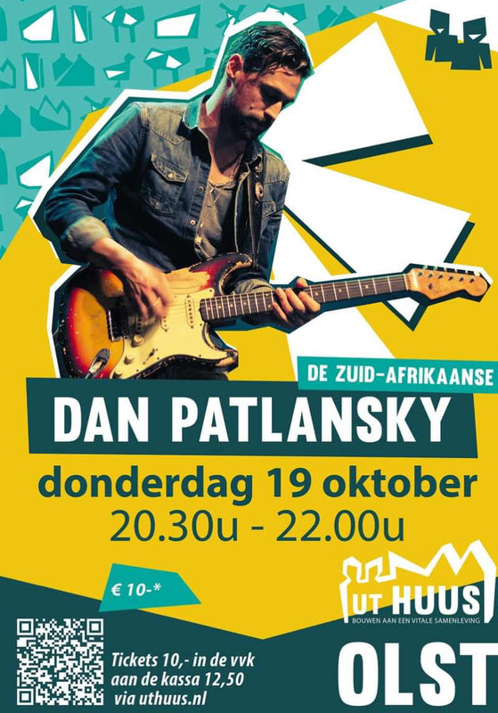DAN PATLANSKYWAAR: Holstohus Jan Schamhartstraat 5 8121 CM Olst WANNEER Do. 19 okt 20:30 - 22:00 ENTREE : Tickets voorverkoop € 10,- Aan de kassa € 12,50 WEBSITE