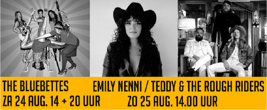 De laatste twee concerten van ons zomerprogramma komen alweer in zicht.. En De Amer zou De Amer niet zijn als we niet ook nog een hele speciale afsluiting van deze zomer in petto zouden hebben. Even swingend 'Back to the Sixties' met The Bluebettes en country zoals het bedoeld is met Emily Nenni en de 'cosmic' country rock van Teddy and The Rough Riders.
