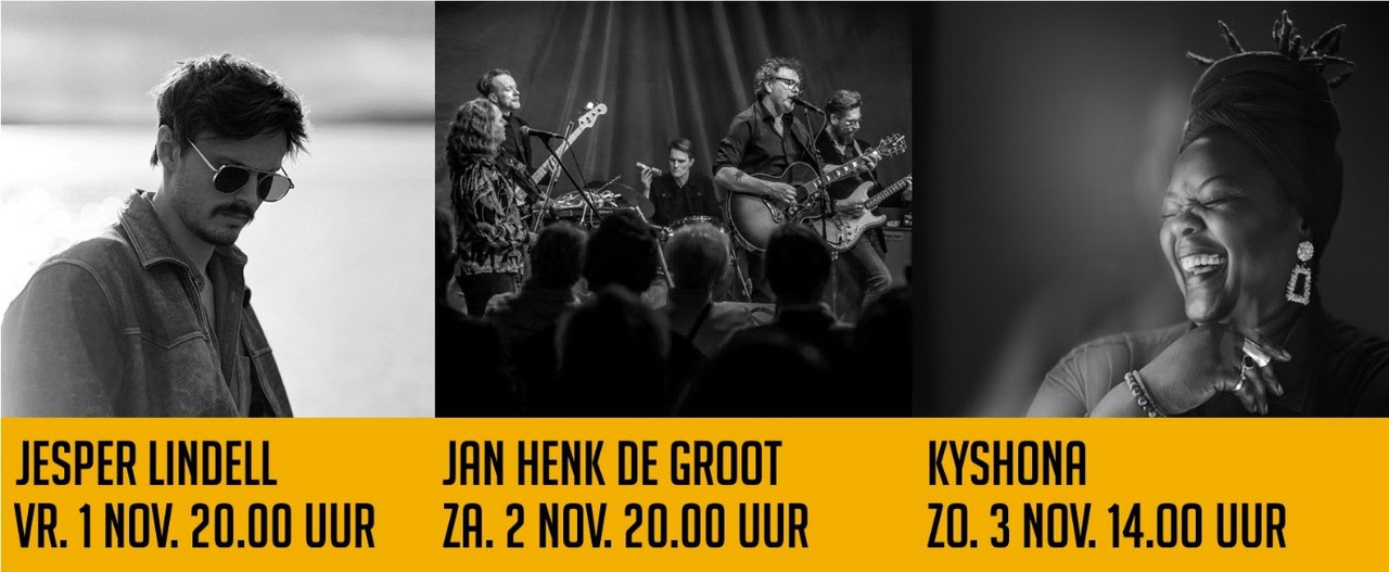 Jesper Lindell komt uit Scandinavië en maakt americana, Jan Henk de Groot als troubadour ‘oet Grunn’ en Kyshona met krachtige stem en spirituele nummers. Het eerste weekend van november heeft voor elk wat wils!