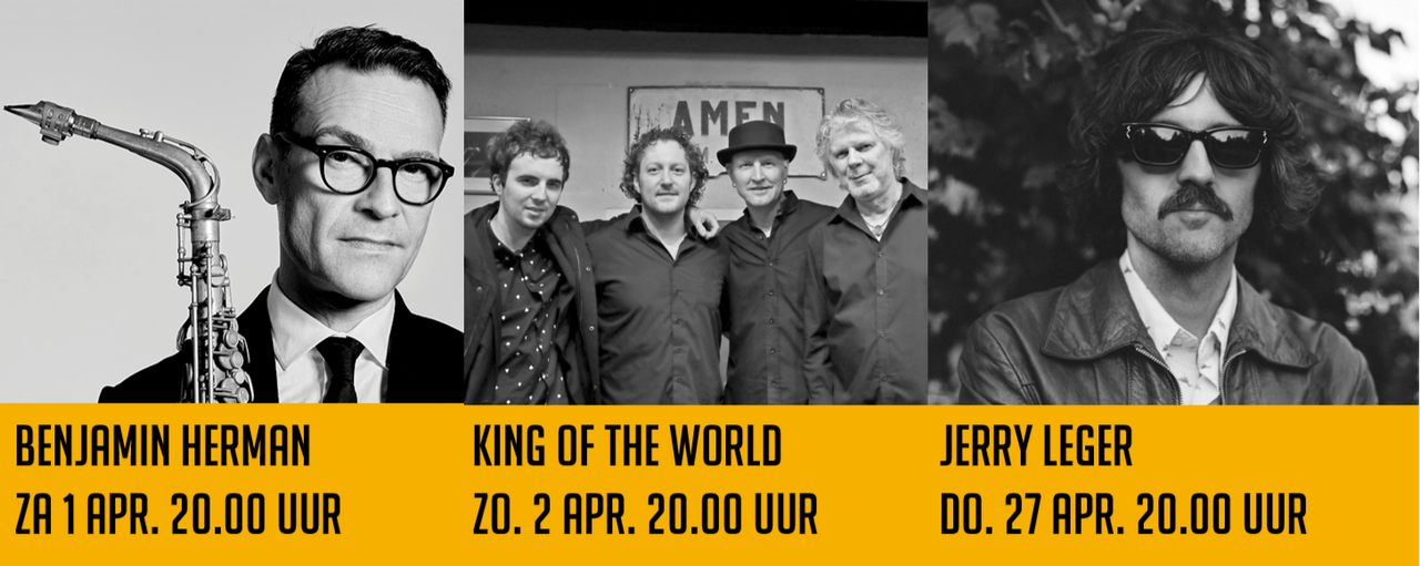 Het eerste weekend van april staan Benjamin Herman en King of the World op het podium. Benjamin Herman maakt jazz van uitzonderlijke klasse en brengt daarmee een genre naar De Amer dat we niet vaak horen. Een dag later volgen de mannen van King of the World met rhythm & blues. Hun middagconcert was razendsnel uitverkocht. Maar er is goed nieuws: bij voldoende belangstelling is er ’s avonds een tweede optreden.