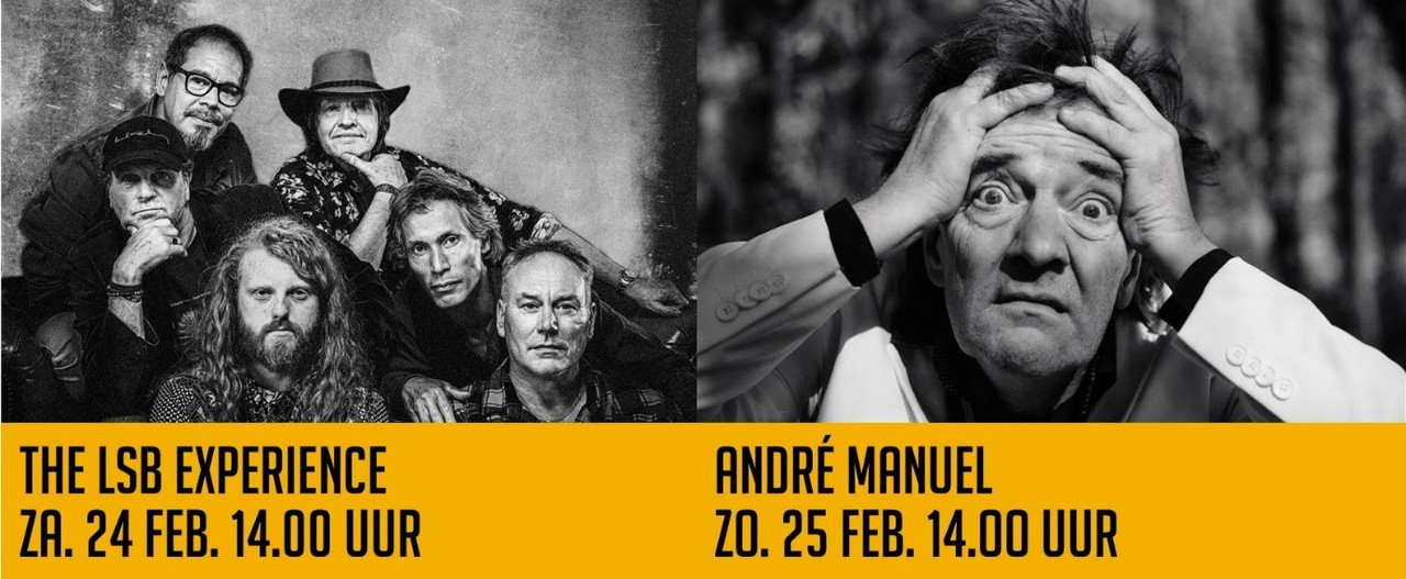 Een extra concert van The LSB Experience op zaterdag 24 februari! En op zondag de grofgebekte, muzikale cabaretier André Manuel op het Amerpodium.